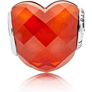 Love comes in many shapes. Set on a sterling silver core, our heart charm for Pandora Moments bracelets and bangles is made from orange cubic zirconia, faceted to reflect the light. Create your own love story by styling it together with other Pandora charms, or gift it to someone special as a lasting token of your love. You can even thread it on a necklace chain as an alternative to a pendant.
