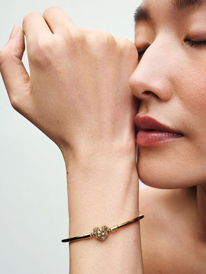 Fall in love with our Celestial Heart Clasp Bangle. Plated in 14k gold, our iconic heart clasp gets a stellar update, featuring a moonlit night sky complete with sparkling stones. Whether you wear it with or without charms, alone or as part of a layered look, it's destined to be a forever favourite.