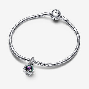 Channel the deepest corners of the ocean with our Disney The Little Mermaid Ursula Dangle Charm. Inspired by the mysterious power of Ursula, this charm captivates with a luminous purple lacquered artificial pearl encased in sterling silver tentacles. Sparkling stones on the tentacles and a pavé-covered bail catch the light like the sun reflecting off the waves.