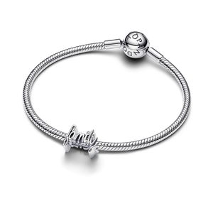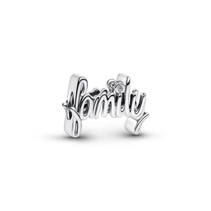 A shining reminder of what matters most. This sterling silver charm features a handwritten 'family' script with a cubic zirconia dot over the ‘i'. Expertly crafted, it’s a timeless tribute to the heart of every story.