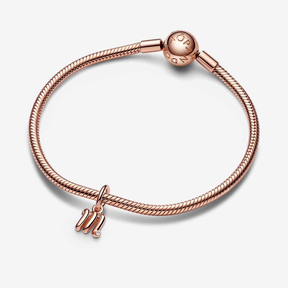 Inspired by bent wire and the movement of a pen across paper, this 14k rose gold-plated charm features a three-dimensional letter a that looks handwritten. The end of the lower-case letter is playfully punctuated with a round brilliant-cut clear cubic zirconia, representing that there is something precious in all of us. Wear it as a symbol of who you are or a reminder of someone you love.