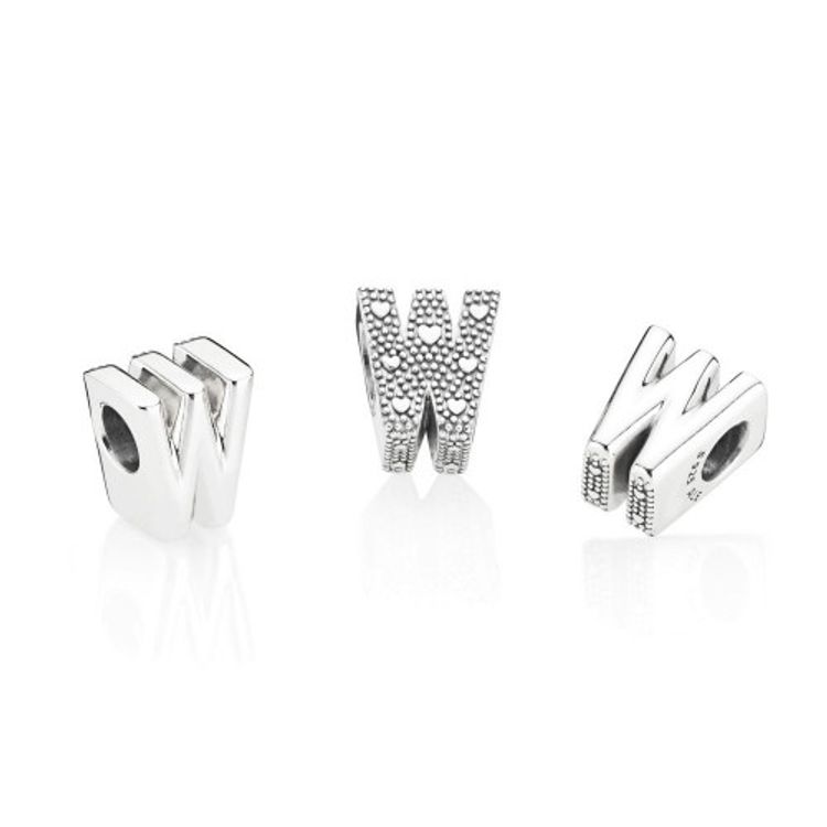 Tell your style story through our letter charms that let you spell out the words that mean the most to you. Monogram your Pandora Moments charm bracelet with important initials or create a personal message with the letter W. The reversible sterling silver charm is polished on the front and feature raised hearts and beads on the back. Add the letter A to your charm collection or gift it to someone that's got a special connection to the letter.
