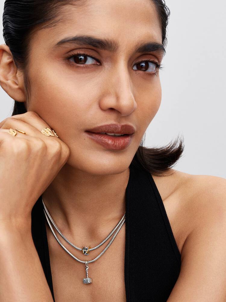 Channel the thunderous strength of Thor. Crafted in sterling silver and 14k gold plating, the helmet charm symbolises power, honour and responsibility. Wear it as a bold reminder of heroic legacy and unyielding courage.