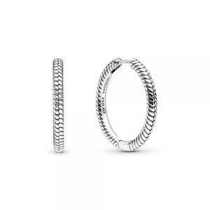 Create an instantly iconic look with the Pandora Moments Charm Hoop Earrings. These sterling silver earrings feature Pandora's famous snake chain pattern. Each hoop is the same size as a small Pandora O Pendant, meaning they can hold up to three charms. However, be mindful not to over style them. Sleek on their own or personalised when paired with your favourite charms, these hoops are a style win.