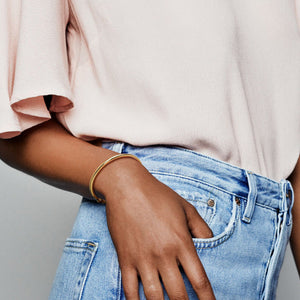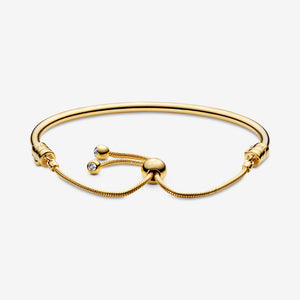 Polished Pandora Shine casts its light over this sliding bangle in 18k gold-plated sterling silver, which adjusts to fit your wrist perfectly. Clear sparkling stones inside metal beads are the perfect ending.