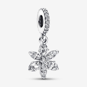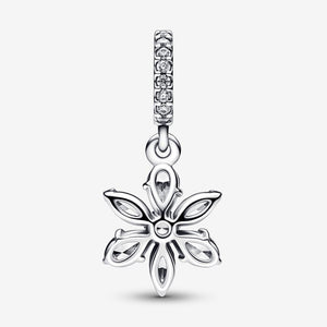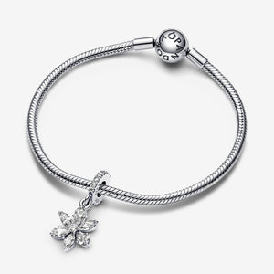 Bring the beauty of nature to your jewellery with the Sparkling Herbarium Cluster Dangle Charm. This sterling silver dangle charm features a cluster of alternating pear and marquise-shaped stones around a round centre stone, forming a geometric shape inspired by petal and leaf elements. An elegant reinterpretation of the shapes we find in nature, perfect to bring a delicate, floating feel to your bracelet, necklace or earrings.
