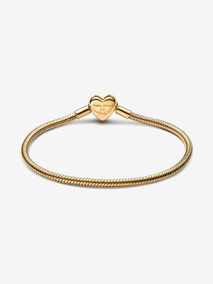 Never feel far from family when you wear the Sparkling Infinity Heart Clasp Snake Chain Bracelet. This 14k gold-plated piece features our iconic snake chain design along with a heart-shaped clasp set with sparkling stones. "Family forever and always" is engraved on one side of the clasp, while the other side has an intricate infinity symbol weaving through the open heart shape. Add up to 18 charms as a reminder of your family roots.
