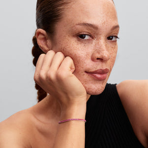 Elevate your style with the Sparkling Pink Tennis Bracelet, crafted in sterling silver with dark phlox pink man-made crystals. Perfect for layering, this tennis bracelet adds depth and colour to your collection.