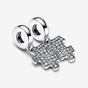 Crafted in sterling silver, the Sparkling Puzzle Piece Dangle Charm is a reminder that friends complete us. One side of the puzzle piece is decorated with sparkling pavé while the other side is left blank for you to engrave your personal friendship mantra. The piece will fit with another from the same charm. Gift one to yourself and one to your bestie and connect with each other in a whole new way.