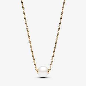 Elevate your style with our Treated Freshwater Cultured Pearl Collier Necklace from our Pandora Timeless collection. This 14k gold-plated piece features an adjustable cable chain with a luminous treated freshwater cultured pearl pendant. A clear cubic zirconia by the clasp adds a touch of sparkle. This necklace represents the fusion of classic and contemporary, making it a perfect choice for both casual and special occasions. Please note that each treated freshwater cultured pearl is unique and can vary in size and colour; normal wear and tear may occur with this material. Our freshwater cultured pearls are treated with bleaching and lustre enhancement. Length 45 cm.