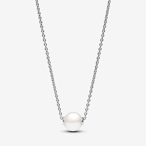 Elevate your style with our Treated Freshwater Cultured Pearl Collier Necklace from our Pandora Timeless collection. This sterling silver piece features an adjustable cable chain with a luminous treated freshwater cultured pearl pendant. A clear cubic zirconia by the clasp adds a touch of sparkle. This necklace represents the fusion of classic and contemporary, making it a perfect choice for both casual and special occasions. Please note that each treated freshwater cultured pearl is unique and can vary in size and color; normal wear and tear may occur with this material. Our freshwater cultured pearls are treated with bleaching and lustre enhancement. Length 45 cm.