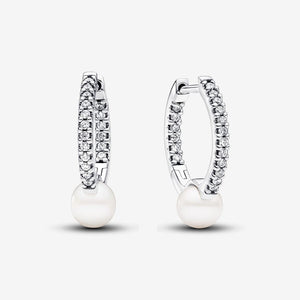 Keep it classy with our Treated Freshwater Cultured Pearl Hoop Earrings. Crafted in sterling silver, the slightly squared hoops showcase a delicate concaved section featuring a treated freshwater cultured pearl. The click closure ensures a secure fit. This pair, an everyday addition to the Pandora Timeless collection, celebrates the timeless allure of pearls and the artful interplay of materials. Please note each treated freshwater cultured pearl is unique and can vary in size and color; normal wear and tear may occur with this material. Our freshwater cultured pearls are treated with bleaching and lustre enhancement.