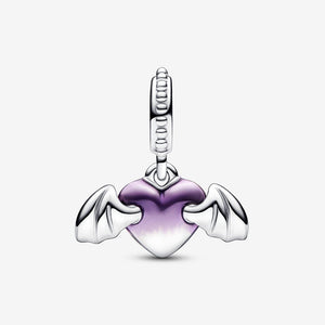 Dial up the scare factor and get into the spirit of your favourite holiday with our Vampire Winged Heart Dangle Charm. This fun charm is decorated with transparent shaded enamel, which creates a gradient from silver to purple colour across the heart. Polished sterling silver wings with grooved detailing add a spooky element to the design, along with an etched smile with fangs on the charm's front. Add this delightfully scary symbol to your charm holders to get into the spirit of the spookiest time of year.