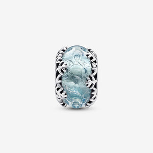 Wear a winter wonderland with the Winter Blue Snowflake Murano Charm. The pale blue frosty effect of this Murano glass charm captures the feeling of looking through the ice of a frozen lake in wintertime. The glass features a mesmerising frozen water bubble effect, with sterling silver cut-out snowflakes framing the core as if they have just landed on the ice. An elegant addition to a winter-inspired jewellery look.