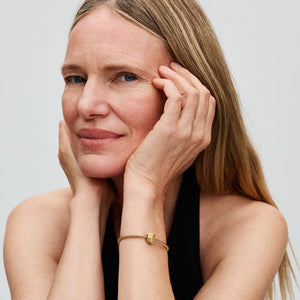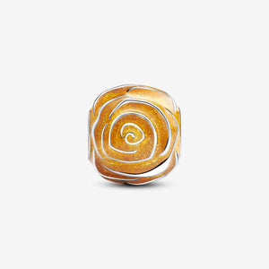 Crafted in sterling silver, the Yellow Rose in Bloom Charm represents the beauty of flowers in bloom. Its symbolic design showcases a blooming rose, adorned with hand-applied transparent glittery yellow enamel. The layered petals create a three-dimensional effect, revealing sterling silver beneath the outer enamel. Inspired by the symbolism of yellow roses—representing joy, friendships, and new beginnings—this piece is a tangible expression of love. Gift a piece of everlasting beauty and heartfelt emotion with this intricately detailed Pandora Moments charm.