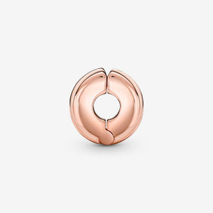 Choose sleek style with the polished ribbons clip charm. Hand-finished in 14k rose gold-plated metal, this clip charm has no silicone grip, so it will slide if not styled onto threads. With flat, polished ribbons wrapped around the clip in a textured criss-crossing pattern, this ribbon charm will bring a sleek, minimalist element to your look and pairs perfectly on a bracelet or necklace to make the rest of your favourite charms shine even brighter.