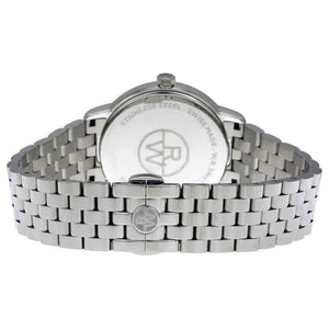 Raymond Weil Stainless steel case with a stainless steel bracelet. Blue dial with silver-tone hands and index hour markers. Minute markers around the outer rim. Analog. Date display at the 3 o'clock position. Quartz movement. Scratch resistant sapphire crystal. Case diameter: 42 mm. Deployment clasp. Water resistant at 50 meters.