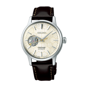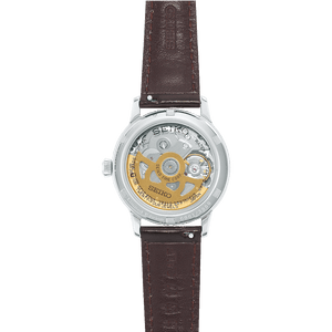 Seiko presage limited edition automatic women's watch SSA781J1. Stainless steel case with a brown calfskin band, and cream dial. Automatic movement with manual winding. Box-shaped hardlex, deployment buckle clasp. Water resistance up to 50m / 5 bar. Case thickness: 11.3 mm, case diameter 33.8 mm, case length 40.4 mm. LIMITED EDITION on the case back. Screw case back. See-through case back. Other Features: 24 jewels, stop second hand function.