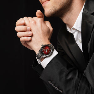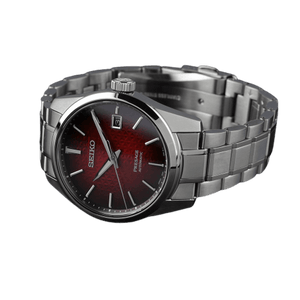 Seiko Presage Sharp Edged collection, inspired by ancient and modern Japanese design. The dials on Presage Sharp Edged timepieces feature a traditional japanese pattern designed to bring growth and success. The 6R35 movement in this timepiece gives the wearer 70 hours of power reserve. The super-hard coated stainless steel case measures 39.3 mm in diameter. The bracelet on the watch is also stainless steel. The red dial is complemented by silver-coloured luminescent hands and indices. An anti-reflective sapphire crystal protects the dial. Features on the model include a date display. Water-resistant up to 10 bars or 100 metres. Movement type - Automatic. Calibre - 6R35