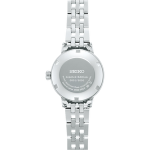 Seiko Presage cocktail time star bar limited edition of 6,000 pieces automatic womens watch. Stainless steel case and bracelrt with dark grey mother of pearl dial. Case size 30.3 mm. Automatic movement. Water resistance up to 50 meters. Box-shaped Hardlex crystal. Deployment clasp with push button release.