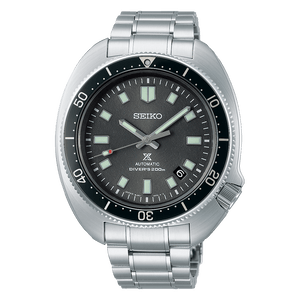 Seiko prospex automatic mens watch SLA051J1. Stainless steel (super hard coating) case with a stainless steel bracelet, grey dial. Case size 44 mm. Water resistance upto 200 meters. Automatic movement. Curved sapphire crystal. Three-fold clasp with secure lock, push button release with extender.