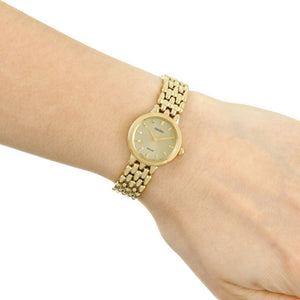 Seiko solar women's watch SUP352. Gold-Plated case with a Gold-Plated bracelet, Champagne dial. Solar movement. Hardlex crystal. Three-fold clasp with push button release. Round case shape. Case size 23 mm. Water resistant at 30 m.