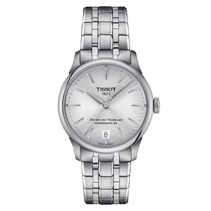 Close your eyes and think of a pure swiss watch and you’ll see the chemin des tourelles. Named after the street that leads to tissot's home in the swiss mountains, it’s tissot’s icon round, classic, mechanical, ageless. Now updated and refined, this edition has a gently domed sapphire crystal that sits over a soft sunray dial with simple, elegant baton hour markers, each faceted to catch the light in an understated but sophisticated way. And under that is the nivachron powermatic 80, a state of the art automatic mechanical movement with an 80 hour power reserve and elevated anti magnetism. A watch for all time. Stainless steel case and bracelet with silver dial. Case size 34mm. Water resistance up to 50 meters. Domed scratch resistant sapphire crystal with antireflective coating. Interchangeable quick release bracelet, butterfly clasp with push buttons.